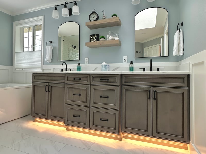 We recently completed a kitchen and primary bathroom renovation for an Edmonds homeowner — coordinating both projects under one contract for a cohesive design. The kitchen received a full layout redesign with custom cabinetry, and the bathroom was rebuilt with a custom tile shower, double vanity, and updated plumbing.